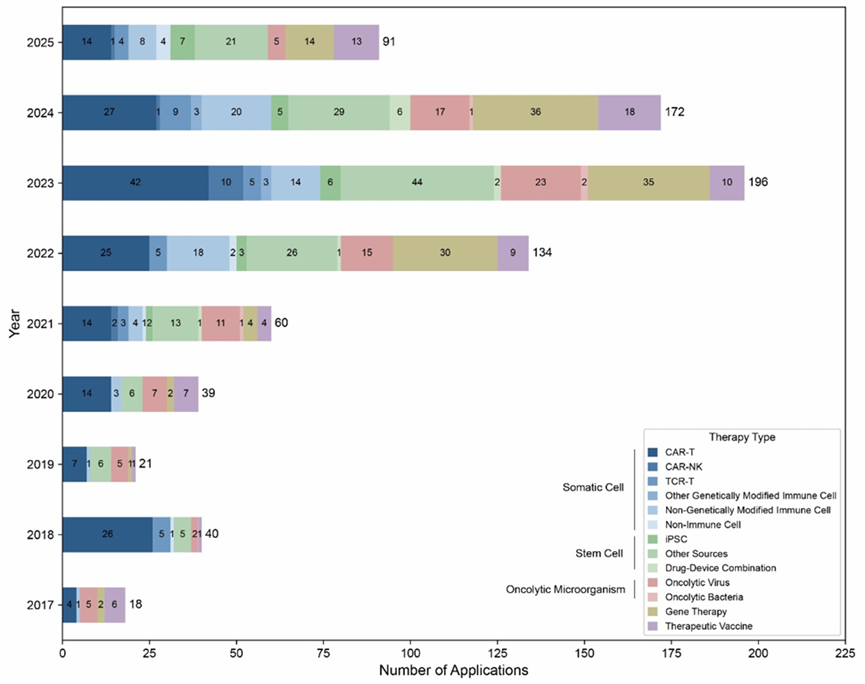 2017-2025年中国CGT产品IND申请及临床试验启动状态